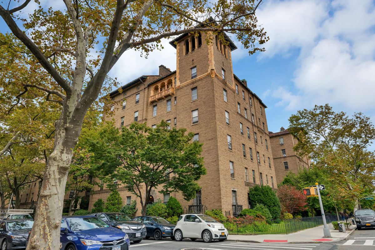 A historic garden apartment complex spanning a city block. It consists of eight interconnected buildings with a U-shaped plan around a massive private garden. A classic example of the Point Access Block typology.